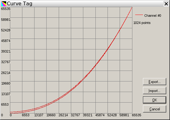 Instead of the standard sRGB tone curve, the dcraw and Scarse sRGB profiles have a roughly gamma=2.2 TRC. The mystery profile has a 256 point TRC that also closely replicates a 2.2 gamma curve, except 0 and 1 both map to 0, which means that when applied to a 16-bit image, the first 512 tones get mapped to 0, thereby potentially destroying a good chunk of shadow detail. (I'll mention the color.org profile TRCs in the following section on profile black points.)